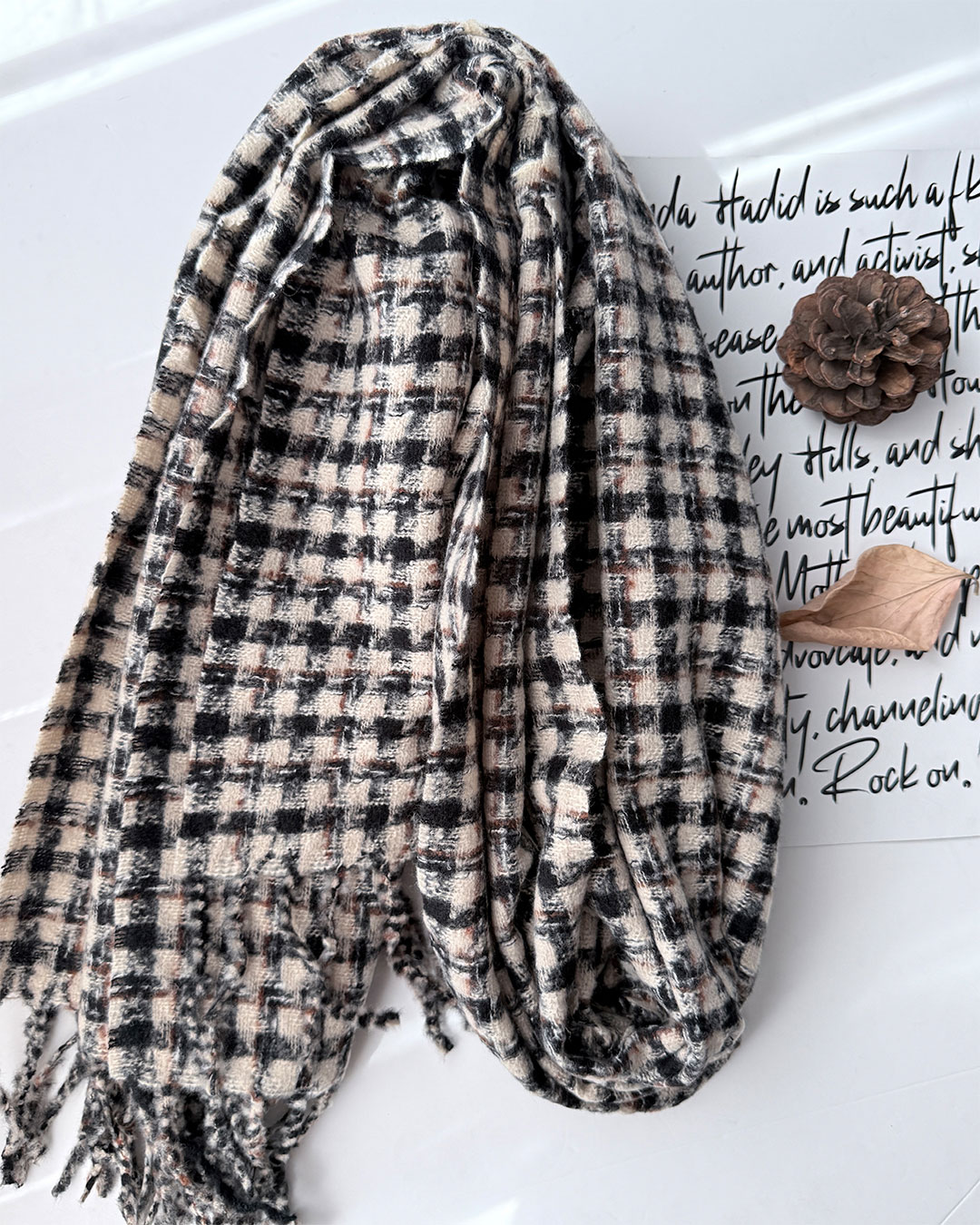 یا می‌توانید این شال را با استایل مونوکروم با پالتو یا وست اوور سایز ست کنید.