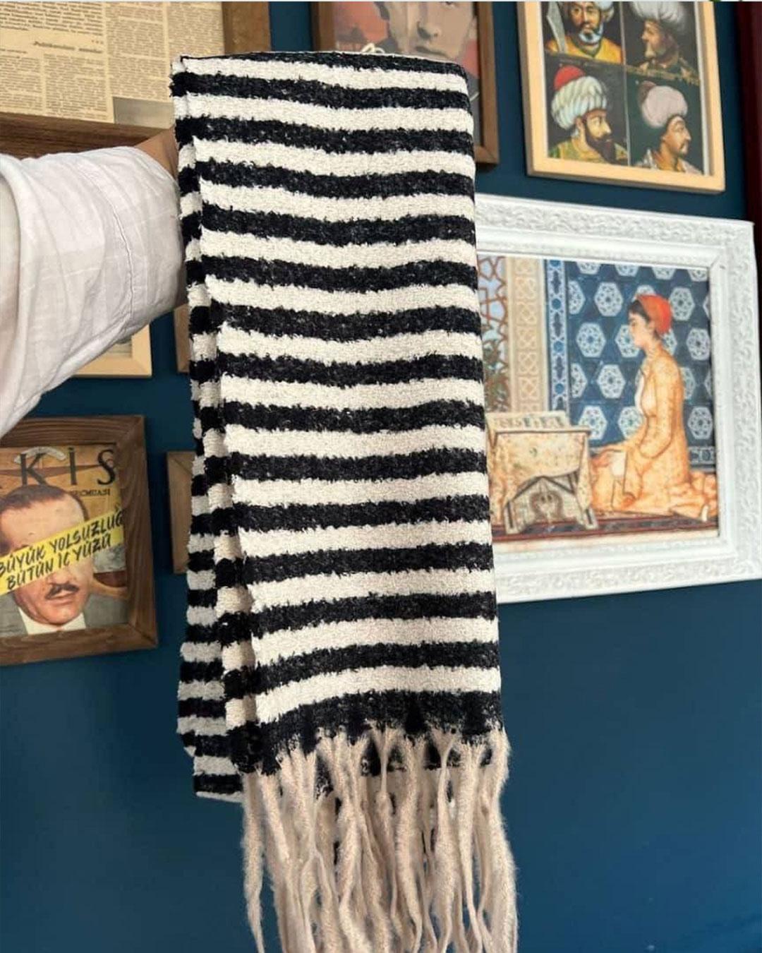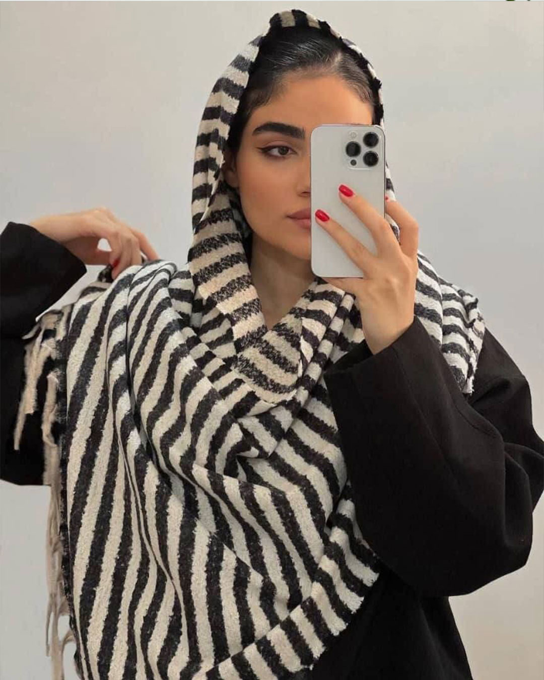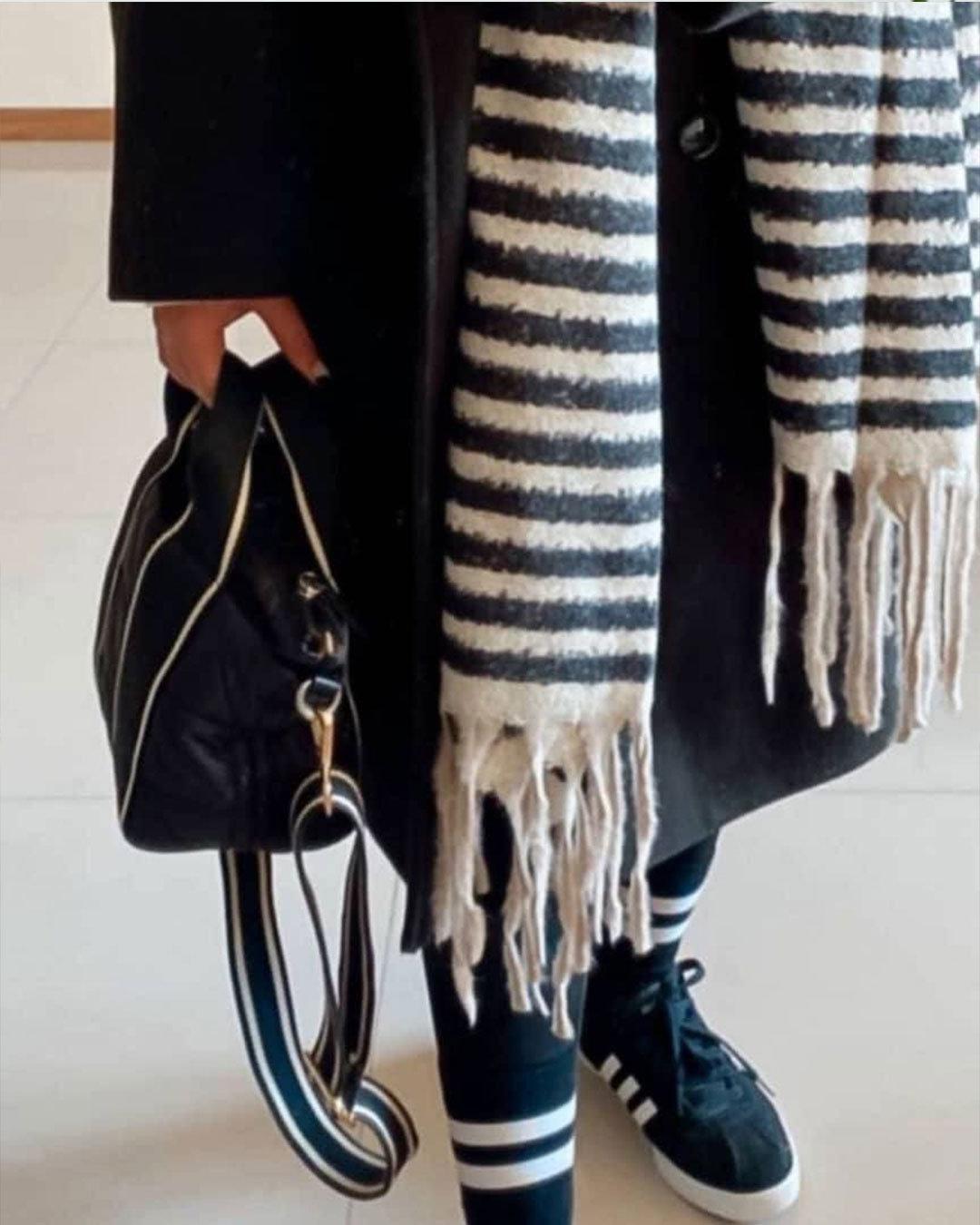یا میتوانید این شال را با استایل مونوکروم با پالتو فوتر ست کنید.