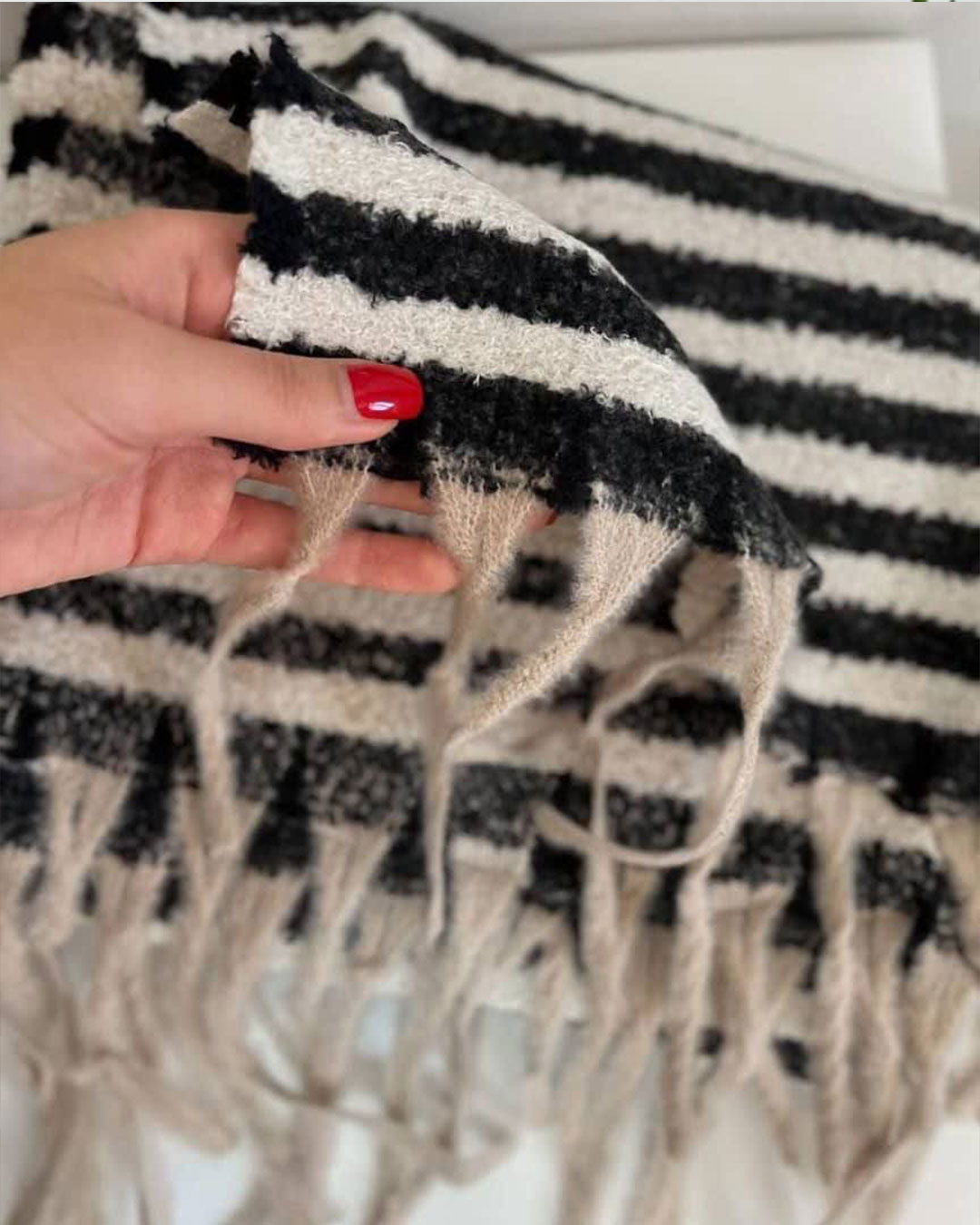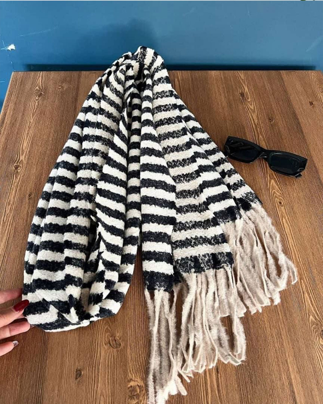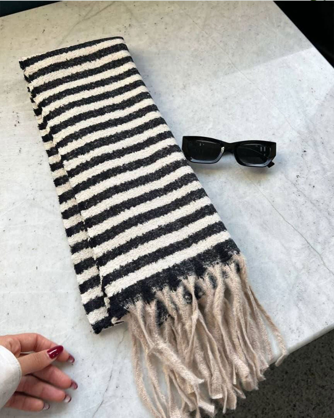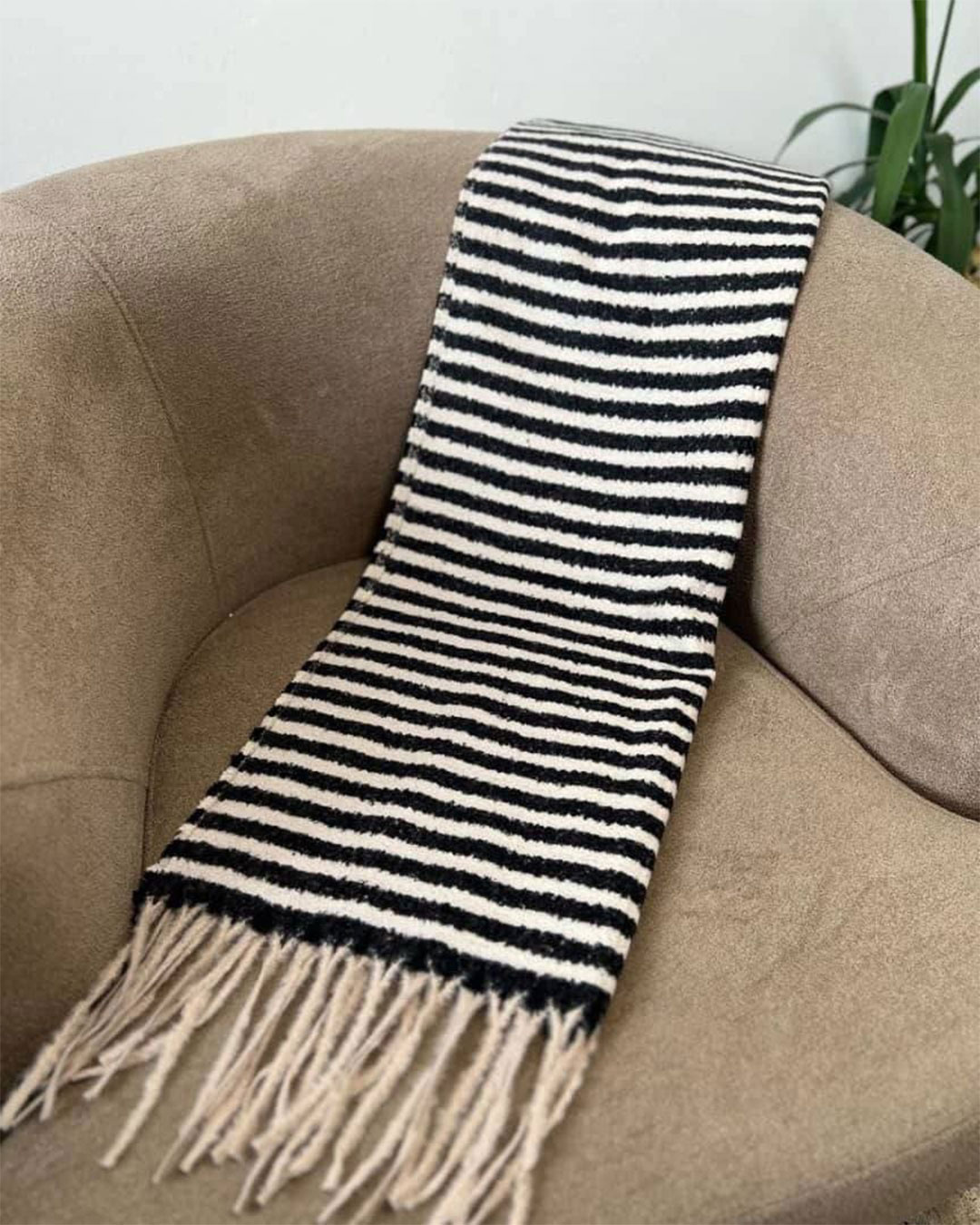 پترن راه راه از سالیان دور در طراحیهای صنعت مد دیده میشود. این طرح معمولا نشانه ظرافت، استایل خوب و تطبیق پذیری بوده است. در طراحی شال پاییزه دلاسا نیز از همین طرح استفاده شده است. این شال با داشتن طرح بسیار زیبای راه راه و رنگ همیشه کاربردی سفید و مشکی مناسب برای هر سبک سلیقه و استایل است. در حال حاضر استفاده از پترن راه راه در پوشاک ترند و بسیار پرطرفدار است.
