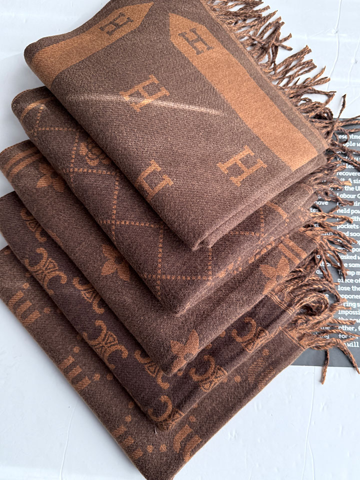 آیتم‌های طرح برند همیشه توجه طرفداران صنعت مد را به خود جلب کرده است. این طرح‌ها معمولا نشانه لاکچری بودن، استایل خوب و مدرن بودن است. در طراحی شال پاییزه مدل 5877 نیز از همین آیتم‌ها استفاده شده است. این شال طرح بسیار زیبایی از برندهای محبوب را داراست.